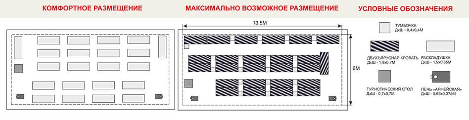Армейская палатка каркасная М-50 предназначена для всесезонного использования в любых климатических зонах при температуре от -50°С до +50°С. Размеры: 13,5х6х3,05 м, площадь пола 81 м². Вместимость до 50 человек. Оснащена двумя входами, вентиляционными окнами, дымоходами и стальным каркасом с антикоррозионным покрытием. Внешний намёт из ткани с ПВХ-покрытием.